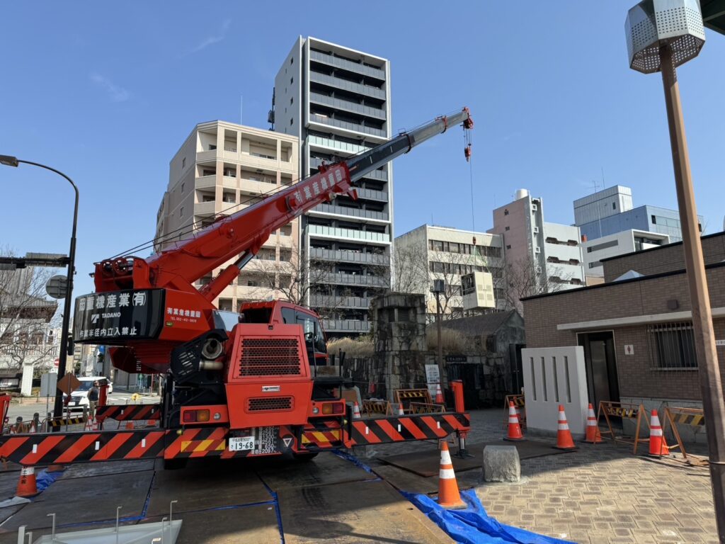 大型レッカーを使用し地下に設置してありましたキュービクルを入れ替えを行いました。